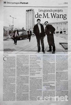 "Le Monde" a rapporté que l'Europe et la Chine Groupe, une section pleine page de la page. intitulé «plans Huang ambitieux." français